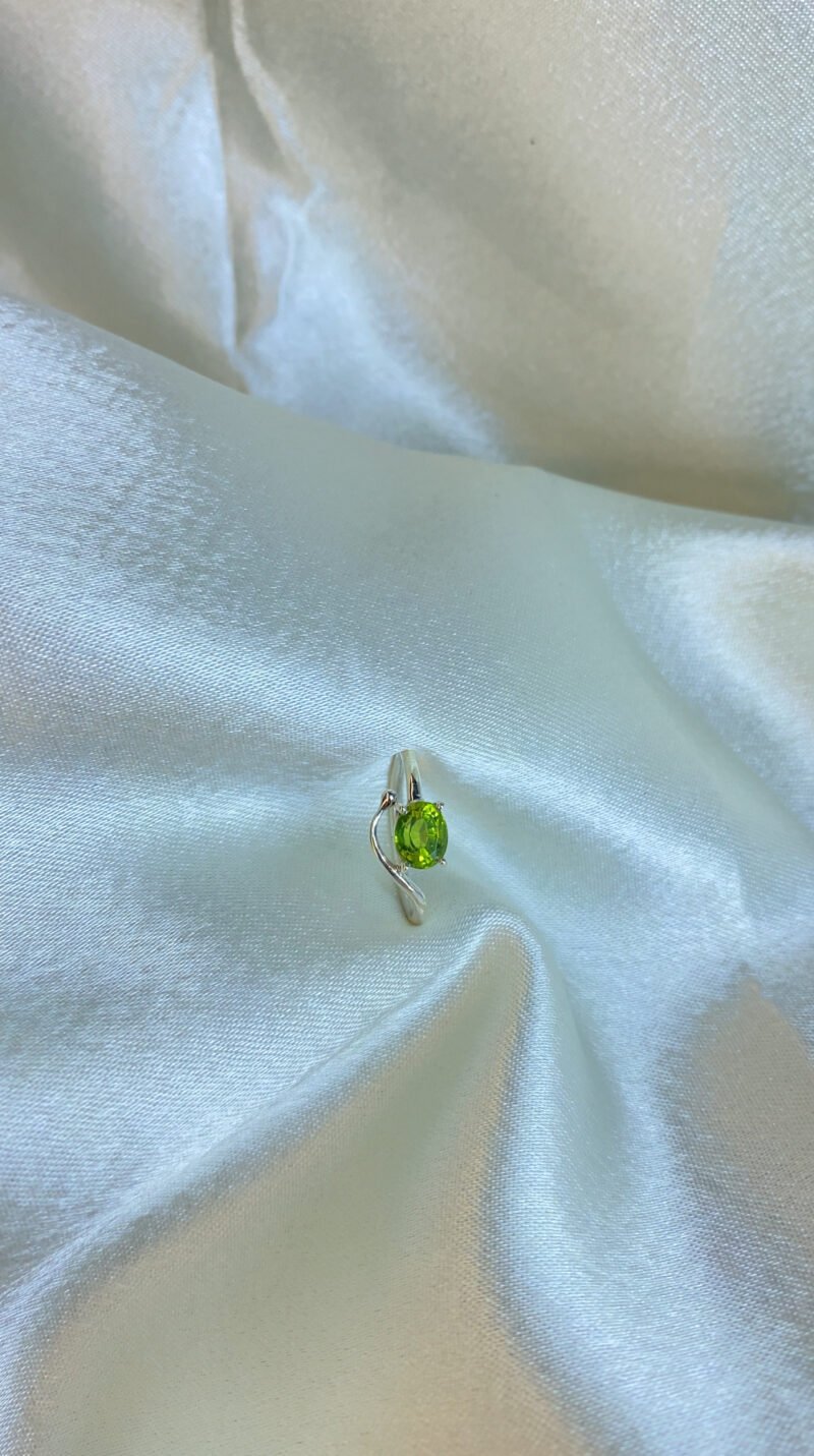 Bright and refreshing, this Oval Peridot Ring features a vibrant peridot gemstone set in high-quality silver. Handcrafted to your exact size, it adds a touch of elegance while bringing positivity, abundance, and emotional balance to the